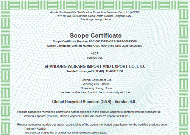 公司自營(yíng)和代理服裝、食品、五金、化工、機(jī)電等各類(lèi)商品及技術(shù)的進(jìn)出口業(yè)務(wù),公司有專(zhuān)門(mén)的生產(chǎn)、加工基地,并通過(guò)了Oeko - Tex Standard 100、GRS、OCS、RCS、USCTP等多項(xiàng)認(rèn)證,可以按客戶要求設(shè)計(jì)生產(chǎn),同時(shí)承辦中外合資經(jīng)營(yíng)、合作生產(chǎn)、開(kāi)展“三來(lái)一補(bǔ)”以及技術(shù)輸出、易貨、邊境貿(mào)易等業(yè)務(wù)。公司產(chǎn)品出口到日本、法國(guó)、俄羅斯等50多個(gè)國(guó)家或地區(qū)。